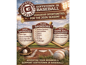Sponsorship opportunities for the 2026 season are now available! In addition to Team and Sign Sponsorships, we are introducing Game Ball Sponsorships for both the Minors and Majors divisions. If you, or someone you know, may be interested in supporting GJB, please reach out to us at [email protected] or visit the sponsorship sign-up linkĀ here.